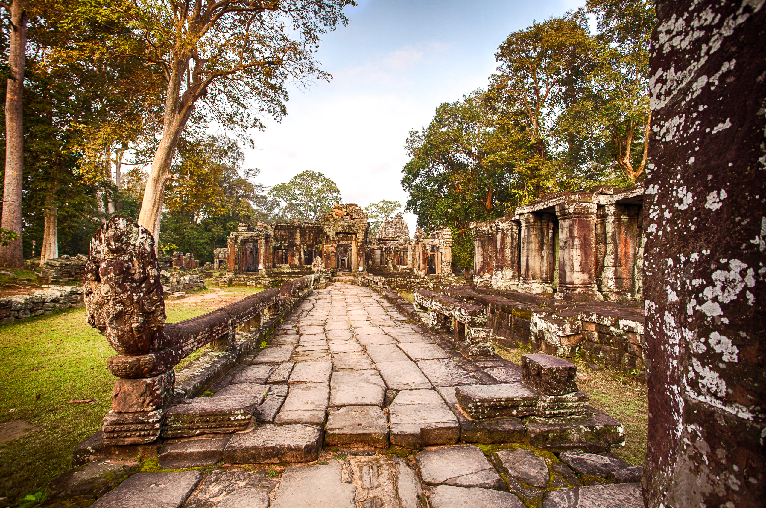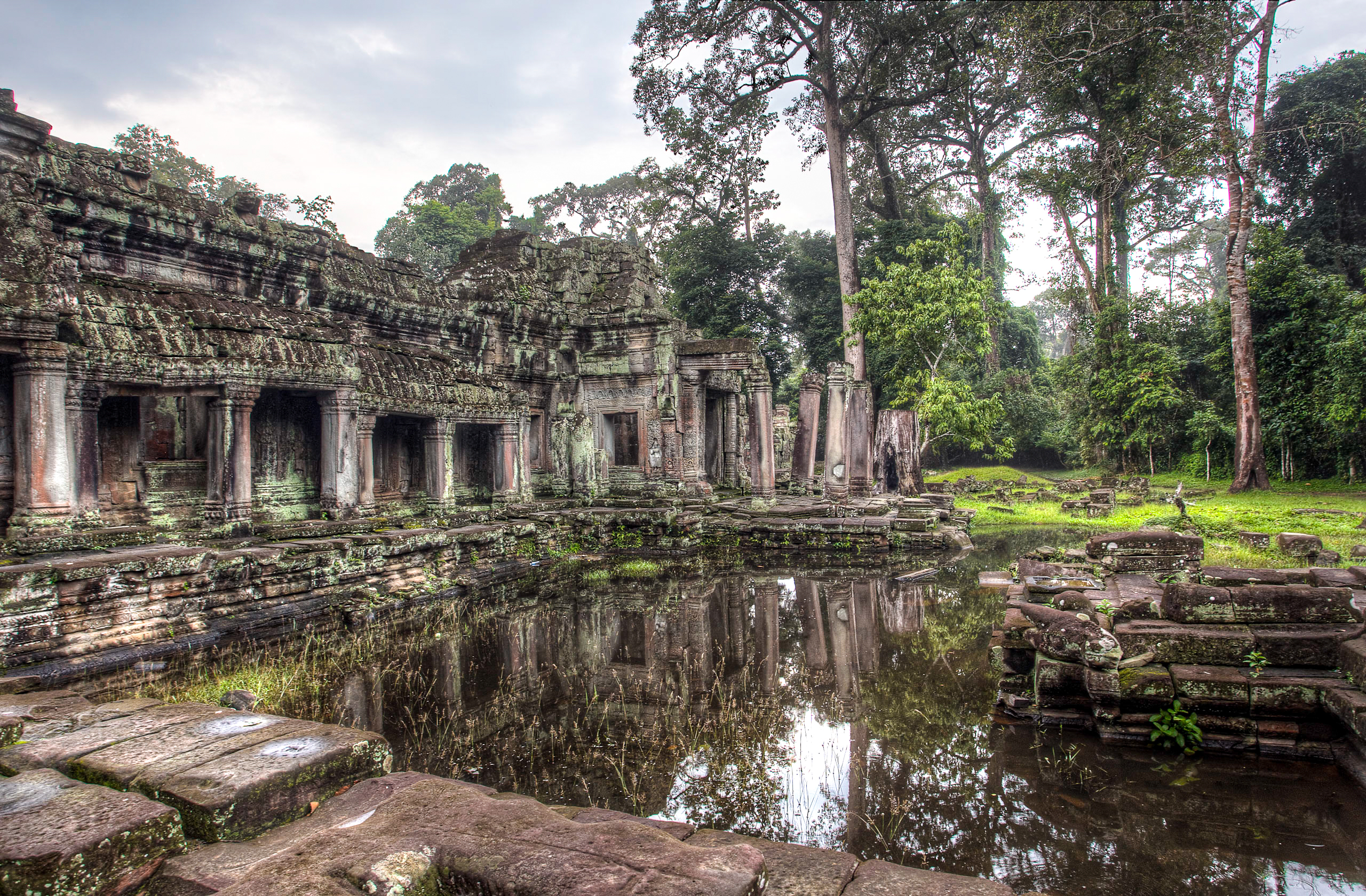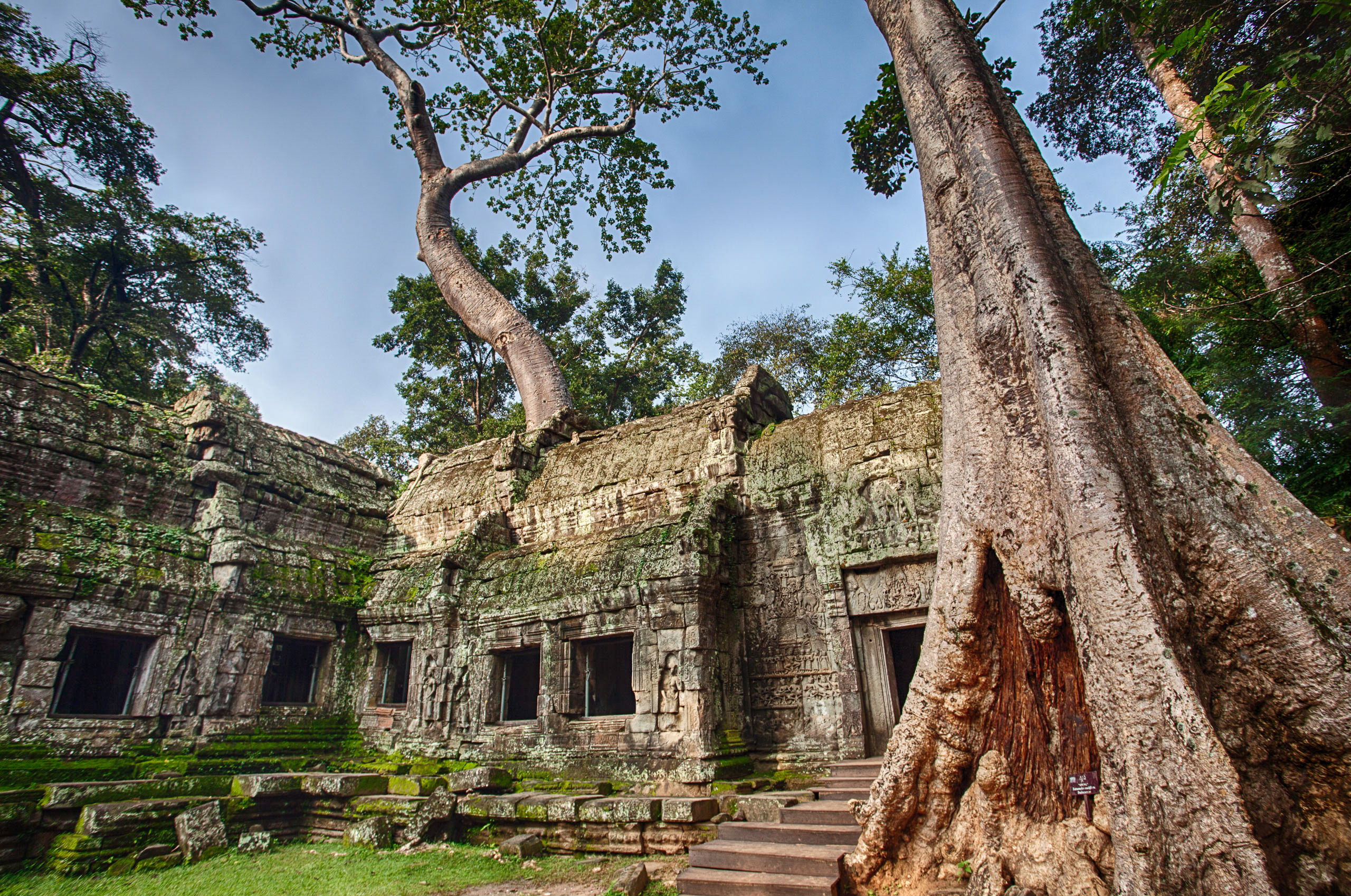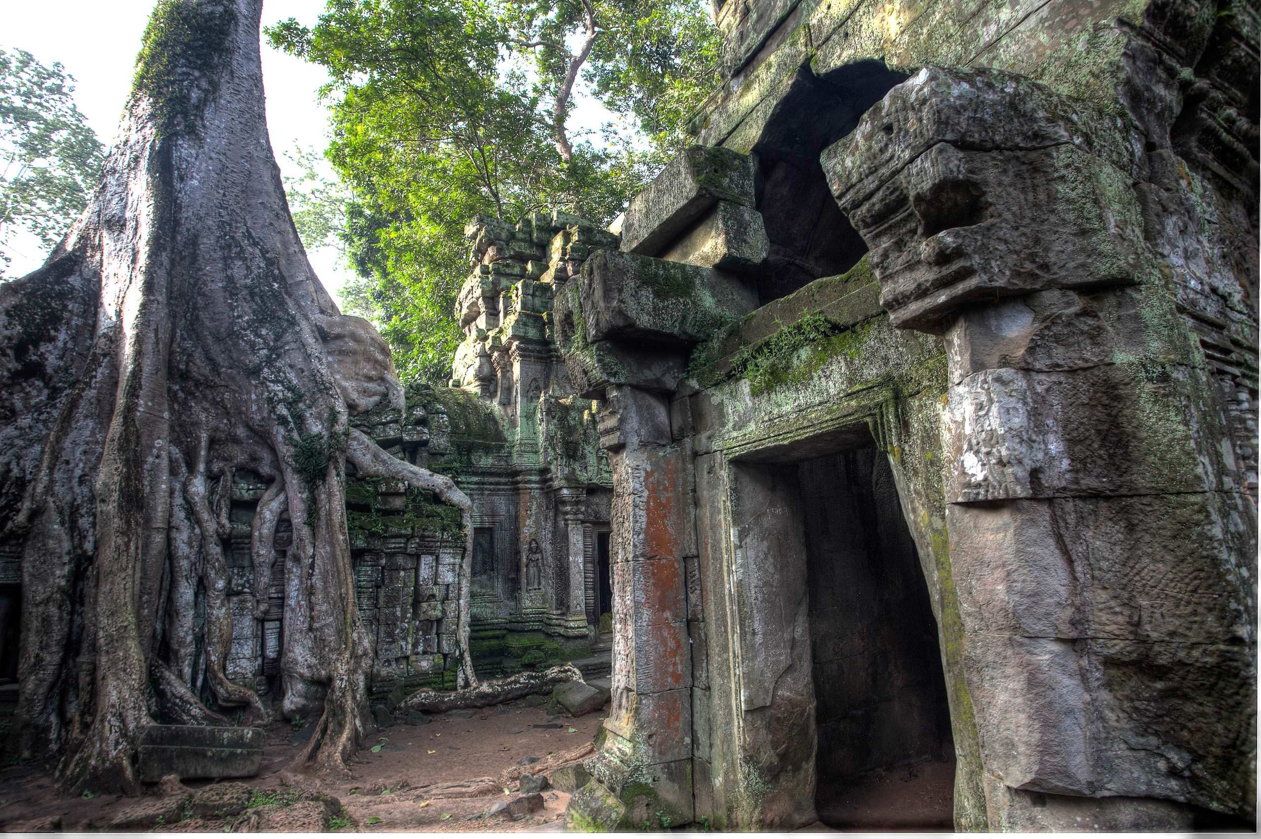 Trees growing from the temple at Ta Prohm, Angkor Wat, Cambodia